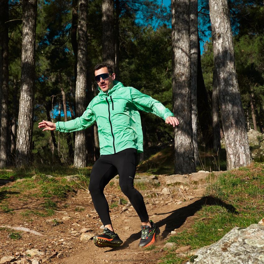 Self-storing jacket for trail running, men’s model. With a windbreaker effect to provide protection from the wind. This makes it ideal for going out for a run in the mountains. Don’t let the weather conditions stop you from racking up the kilometres. And one more thing: it is self-storing so you can carry it conveniently without it taking up much space.