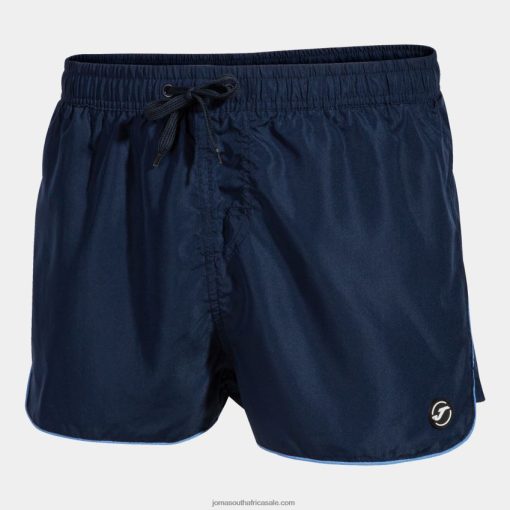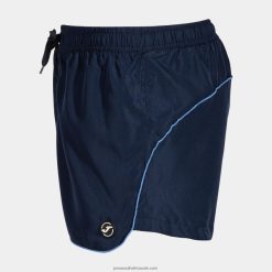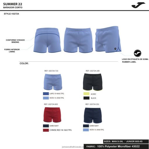 Short-leg swimsuit with adjustable elastic waist with drawstring. Incorporates inner mesh.