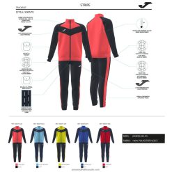 Children’s tracksuit consisting of a jacket and full length jogging bottoms. The jacket features a zip fastening, high neck, two front pockets and is fitted at the cuffs and hem. The trousers boast an elastic waist and two classic side pockets. They are made in a soft and comfortable material which is accompanied by a warm fabric interior. That way, the young athlete’s body temperature will remain constant. It also enables freedom of movement.