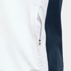 It has been made in an elasticated fabric for padel players’ comfort. It consists of a jacket with zip and trousers.